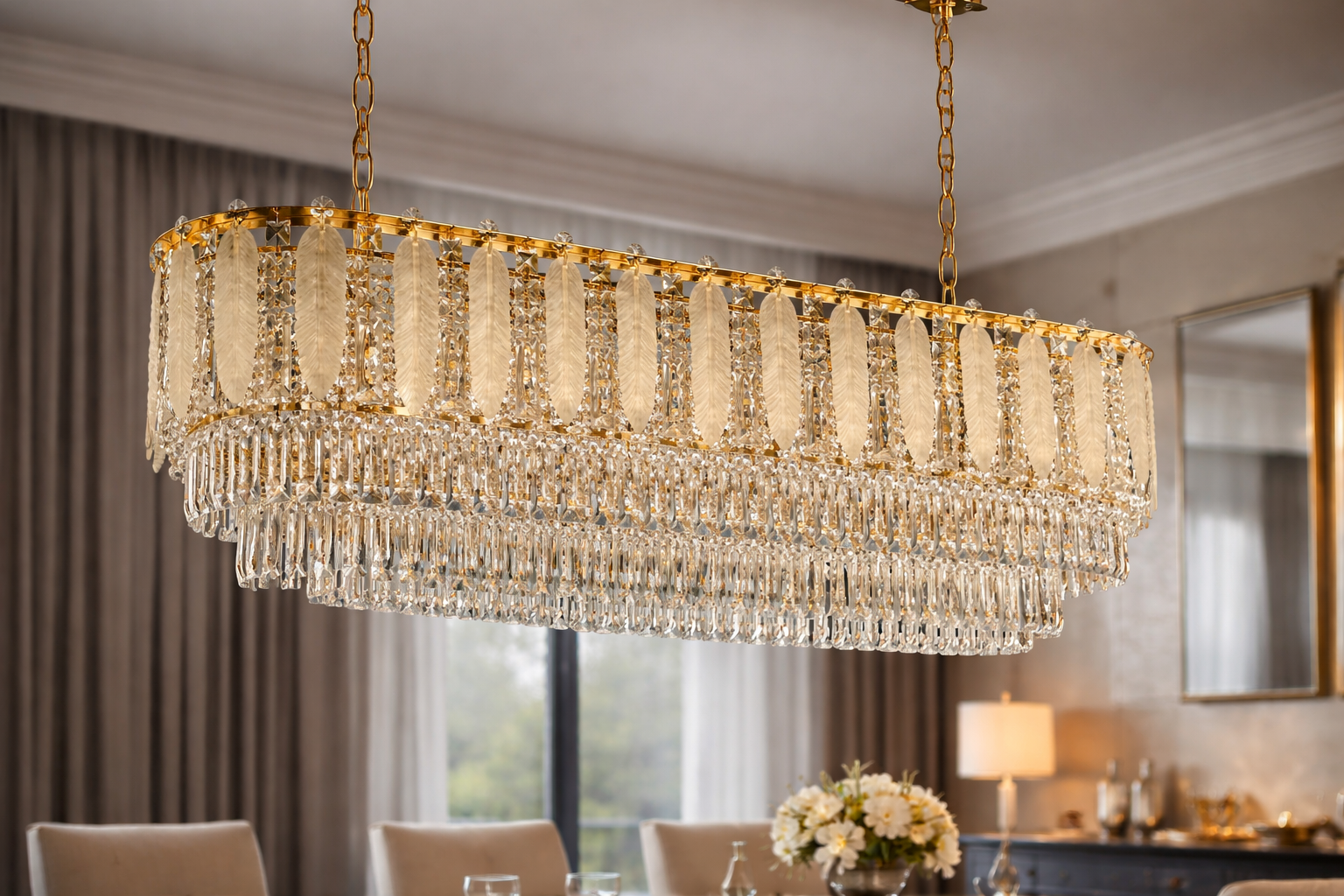 Material: High-quality metal frame with crystal glass detailing